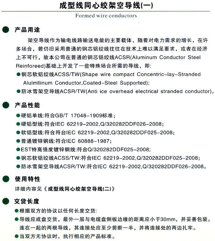 成型線同心絞合架空導線